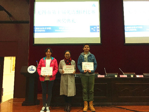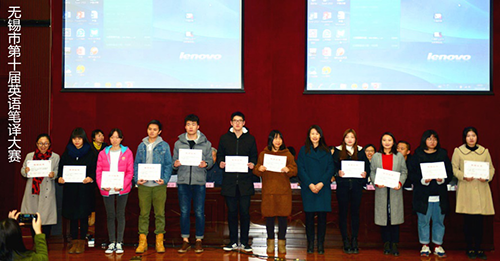 11月18日,国际学院多名师生参加了无锡市第十届英语笔译大赛。这是我们学院首次参加这个比赛,经过一个多月的选拔、培训准备,这次比赛取得了令人满意的成绩: