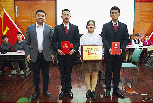 比赛开始前,各个学院代表队都上台做了简短的自我介绍,并亮出了参赛口号,既鼓舞了士气,也似乎向观众们传达了“今晚的冠军就是我们”的意愿,使得全场充满了紧张的气氛。比赛一开始,主持人宣读比赛规则——比赛进入正式赛程。此次党史知识竞赛共分三个环节:必答题、抢答题和风险题,比赛采用记分排名制。在必答题环节中,各队选手渐入佳境,稳扎稳打,步步为营,一时难分高下。第一轮战争的硝烟还未散去,第二轮的枪声已经响起。第二轮是抢答题环节,该环节不但考验参赛队伍的知识储备,同时也对参赛队伍的快速读题、快速反应、快速抢答提出了较高的要求。在抢答环节中,各队选手针锋相对,互不示弱,把赛场气氛推向高潮,再加上各院学生热情洋溢的呼喊,让竞赛非常精彩,充满悬念。风险犹存,仍需谨慎,取胜的关键还是风险题环节,各队选手审时度势,部署战略,精诚合作,为争取最终的胜利而蓄势待发。他们认真分析每一题,让选手和观众受益颇多。在经过一系列的角逐过程中,最终建艺学院代表队夺得桂冠、国际学院紧随其后、智信学院排名第三。学务部副部长张义俊、院团委书记房禹以及学务部方丽芳给获奖代表队颁发了荣誉。