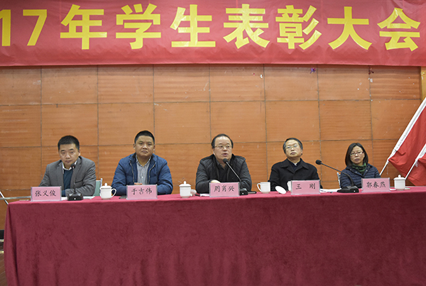 在学院上下深入学习十九大报告精神和全面落实全国全省高校思想政治工作会议精神之际,12月22日下午,学院隆重举行2017年度学生表彰大会。学院院长周肖兴,常务副院长王刚,副院长于吉伟,教务部副部长郭春燕,学务部副部长张义俊及各二级学院书记、年级组长、获奖学生代表、各二级学院学生代表等300多人参加了本次大会。大会由学务部副部长张义俊主持。