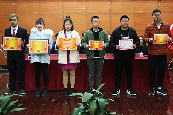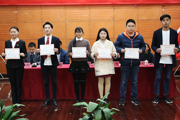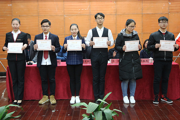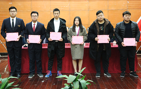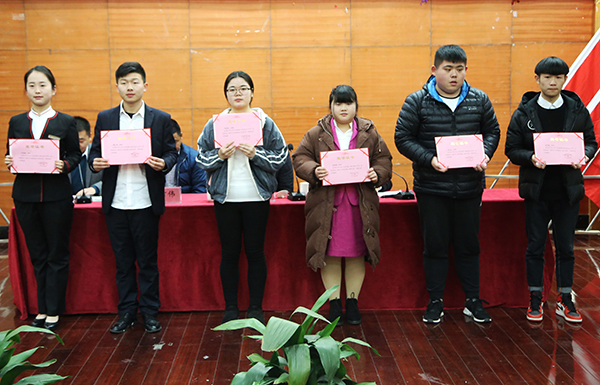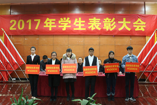 表彰大会在庄严的国歌声中拉开序幕。王刚常务副院长宣读了各类表彰决定,对获奖学生和集体表示热烈祝贺,希望他们再接再厉、再创佳绩,希望全体同学以获奖学生为榜样。2016-2017学年,学院各类奖项具体情况如下:国家励志奖学金86人,省级“三好学生”“优秀学生干部”4人,省级先进班集体2个,市级“三好学生”17人,市级“优秀学生干部”7人,市级先进班集体5个,“优秀副班主任”13人,“优良学风班”10个,学院奖学金380人,“三好学生”371人,“优秀学生干部”86人,“优秀团干部”203人,“优秀团员”230人,“优秀青年志愿者”26人,优秀台员5人,“优秀班级心理信息员”25人,“文明督察队优秀队员”30人,“文明宿舍先进班集体”9个,“文明宿舍”100个,“文明宿舍先进个人”137人。随后,主席台领导为各类奖项获奖学生代表进行了颁奖。国家励志奖学金获奖代表赵玉静同学、优秀团干部代表王彧瑒同学、宿舍先进个人获奖代表季倩倩同学分别进行了发言。