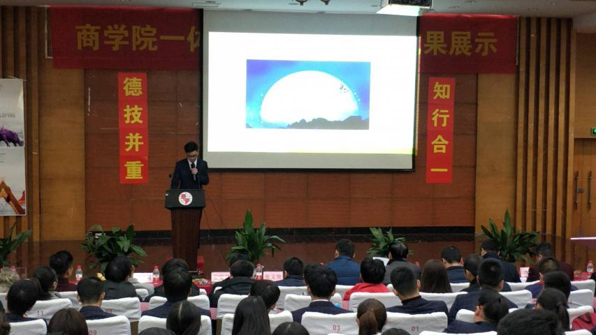 12月27日,商学院在博学B101报告厅隆重举行“一体化育人三项训练成果展示会”,商学院全体学生及任课教师参加了此次展示会。学院于吉伟副院长、校务部梁幸平副部长、学务部张义俊副部长、教师发展中心张宝灵主任、团委房禹书记及商学院领导出席了本次成果展示会。