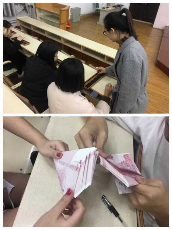 2017年,学院推行教育教学一体化育人,商学院积极响应。作为一体化育人措施中的重头戏——三项训练,由专业带头人毛教授挂帅,王珮琪、韦帅老师担任指导教师,借助“财经社”这一学生社团,利用每周一和周二的晚课时间,开展点钞、新媒体技术、珠算等技能课程。